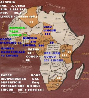 Algeria Lingue 17 Popolazione 29,4 milioni Superficie Kmq 2.381.741 Indipendenza dalla Francia nel 1962 Burkina Faso Lingue 71 popolazione 11 milioni Super. Kmq 274.000 Indipendente dalla Francia dal 1960